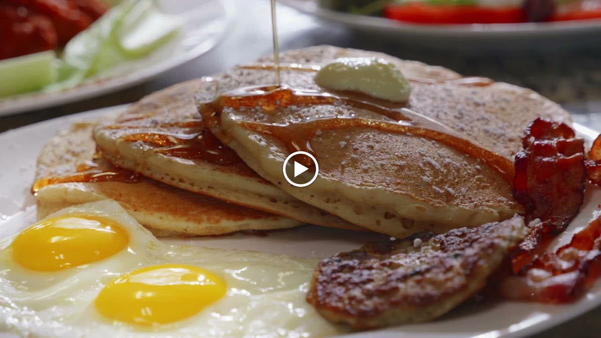 Pancakes Supreme with Bacon Ham Sausage and 2 Eggs